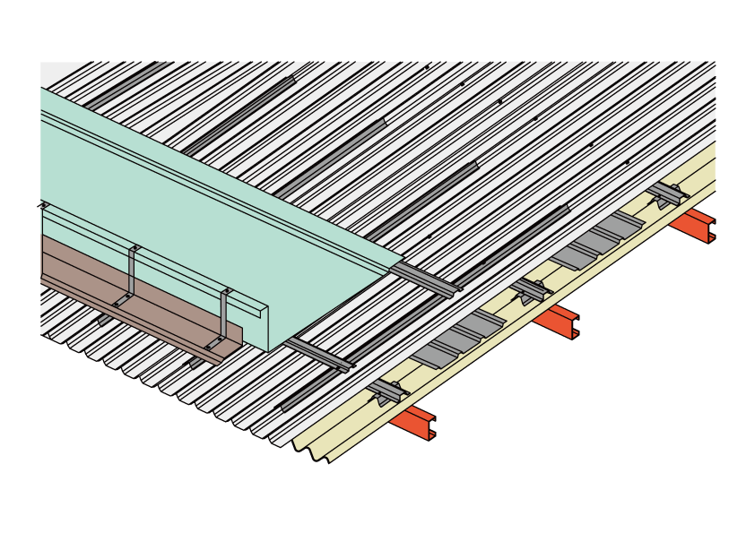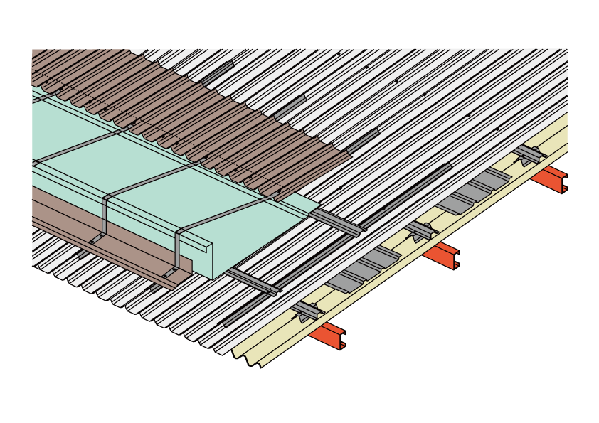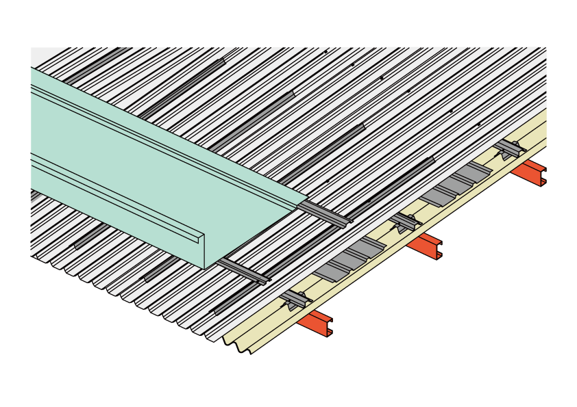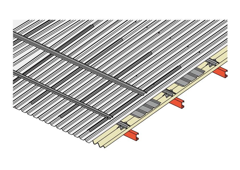 ① WKカバーを施した屋根に補強材・横下地を取り付ける